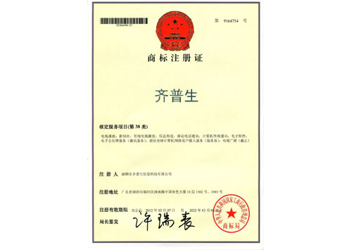齊普生商標(biāo)注冊(cè)證