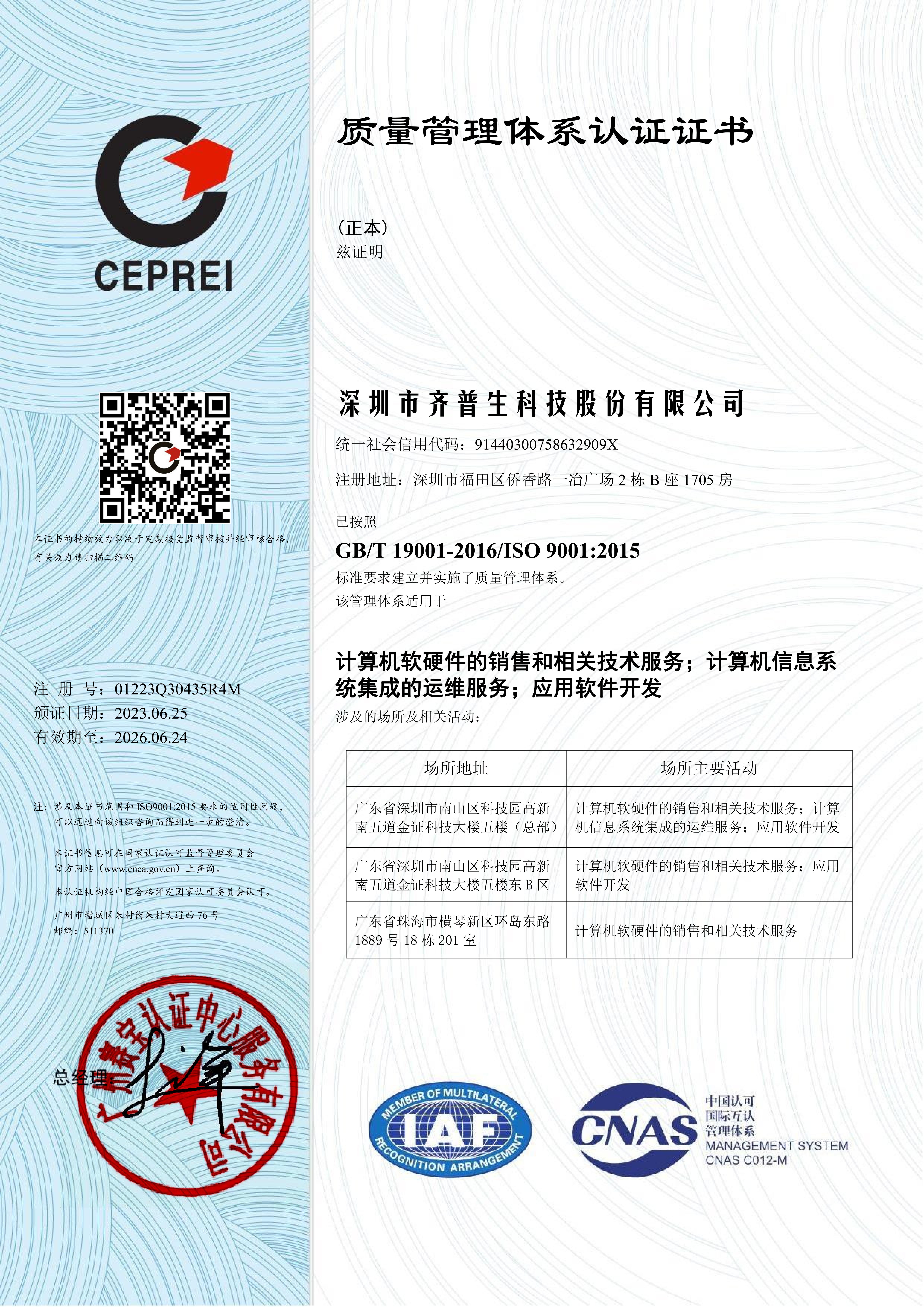 ISO9001證書(shū)(股份)